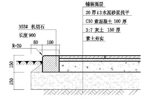 ①先校核道路中線并重新釘立邊樁,在直線部分樁路為10m,在彎道上及路口圓弧為1~5m。