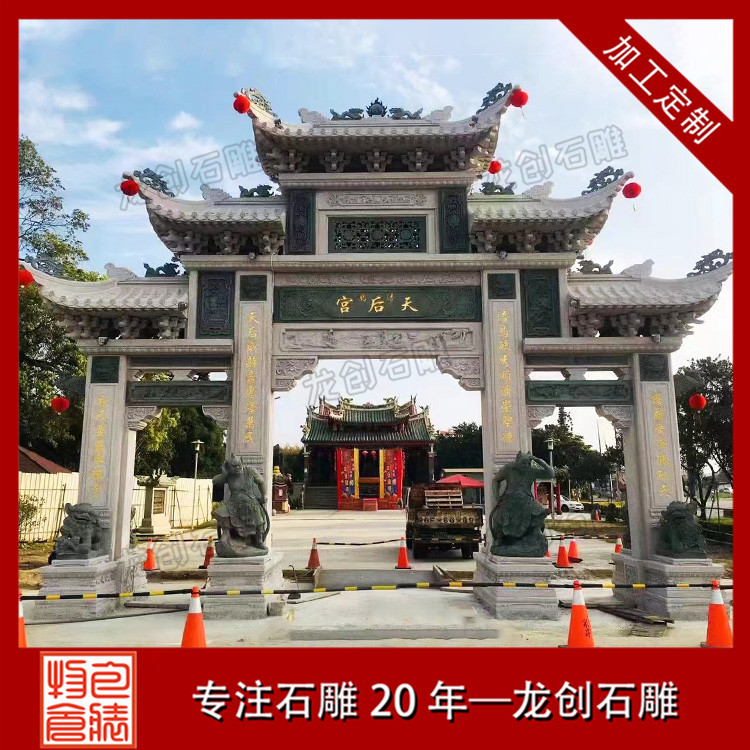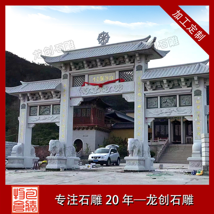 以上分享的石牌樓是中式典型的三門四柱石牌樓造型,作品結(jié)構(gòu)緊密,設(shè)計精巧,款式古樸,是古建景區(qū),宗教寺廟,村莊入口常用的景觀擺件。惠安龍創(chuàng)石雕支持定制各種樣式的石牌樓、石牌坊,專注石雕20年,匠心制作,自有礦山,價格實惠。