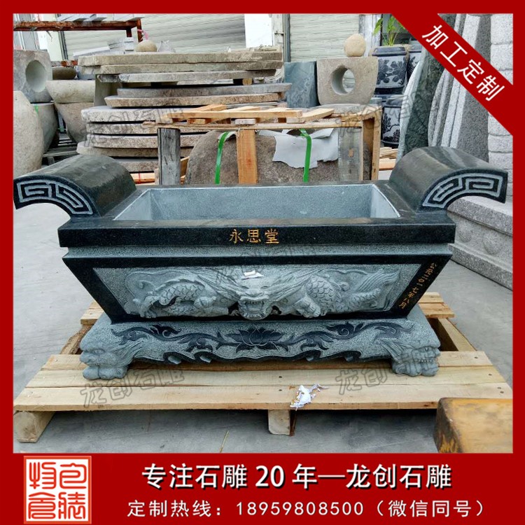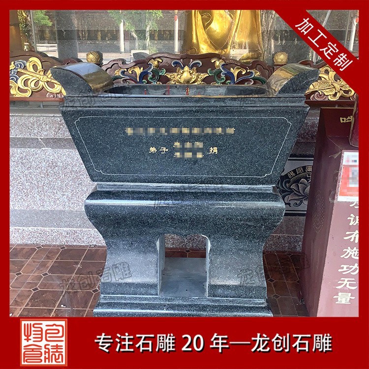 適用場景:花崗巖石雕香爐常用于大型寺廟、佛堂等場合,其堅固耐用的特性能夠經受住風吹雨打,歷久彌新。