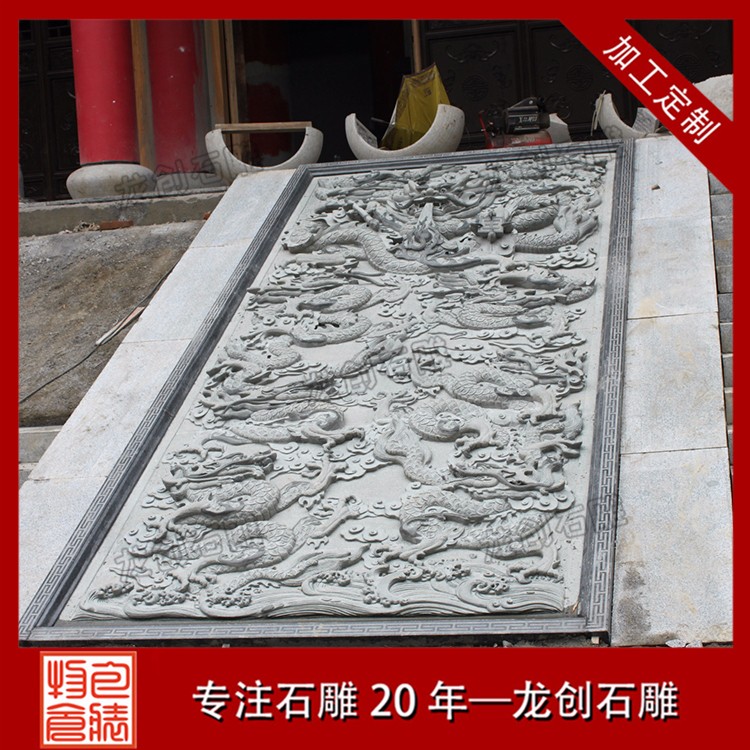 寺廟龍浮雕是我國特有的建筑形式,有一龍壁、三龍壁、五龍壁、七龍壁、九龍壁等多種形式,而以九龍壁zui為尊貴。九龍壁通常建在帝后、王公居住或經常出入的宮殿、王府、寺院等建筑正門的對面,是我國照壁建筑的進一步發展。九龍壁石雕浮雕壁畫常見于寺廟、廣場、政府等各場地。