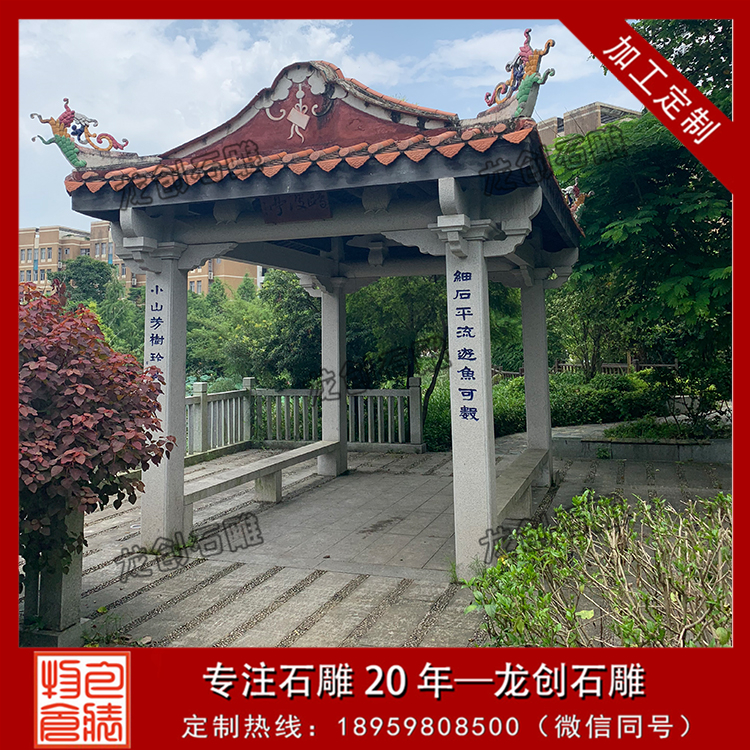 3、惠安縣龍創石雕工藝有限公司是一家石雕涼亭生產廠家,公司雕刻生產各種石雕制品和定做石雕涼亭,品質有保證,款式新穎,樣式齊全,物美價廉。歡迎來電咨詢。
