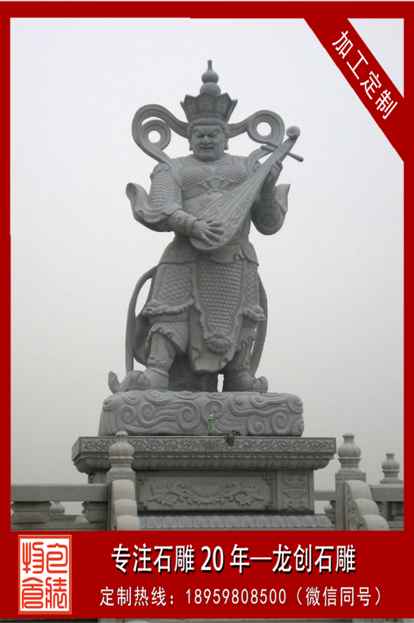 四大天王是佛教的護(hù)法天神。四大天王,又稱護(hù)世四天王,是佛教三十三天中的四尊天神,位于第1重天。第1重天又叫四天王天,通常分列在凈土佛寺的第1重殿的兩側(cè),天王殿因此得名。坊間傳聞四大天王護(hù)世于須彌山山腰上的四天。東方持國(guó)天王,持琵琶,護(hù)持東勝神洲;南方增長(zhǎng)天王,持劍,護(hù)持南贍部洲;西方廣目天王,持蛇或赤龍,護(hù)持西牛賀洲;北方多聞天王,持傘,護(hù)持北俱蘆洲。