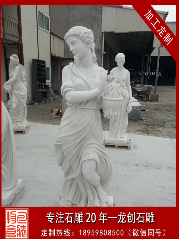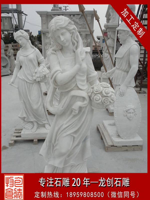 漢白玉西方人物雕塑顧名思義就是用漢白玉雕刻出的西方人物雕塑。漢白玉通體潔白,也用于雕刻佛像等,西方從古希臘時(shí)代就用白色的大理石作為人像雕刻材料。在日常生活中,我們經(jīng)常能看到色調(diào)淡雅、紋理清晰、圖案美觀的大理石。人們常用大理石來裝飾墻壁、制作桌面及各種文具和工藝品。北京故宮各大殿臺基周圍的欄桿,就是用純白色大理石制作的。這種純白色的大理石叫作漢白玉。